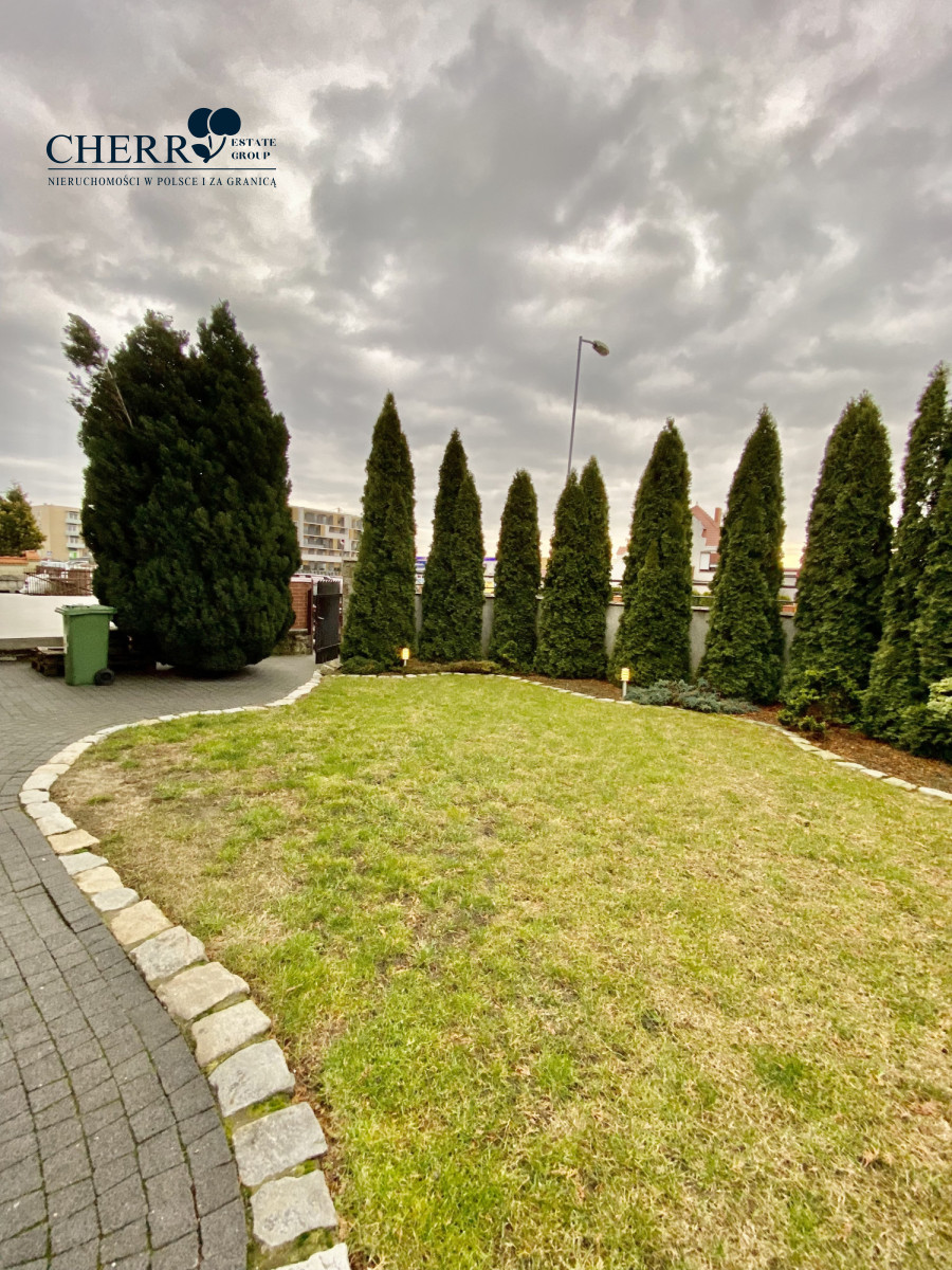 Przed wejściem do lokalu znajduje się estetycznie zagospodarowany teren z zielenią oraz chodnikiem z kostki brukowej. Gęste nasadzenia drzew iglastych tworzą naturalną barierę od ulicy, zapewniając prywatność oraz komfort akustyczny. Zieleń stanowi dodatkowy atut wizerunkowy i wpływa na pozytywny odbiór miejsca przez klientów.