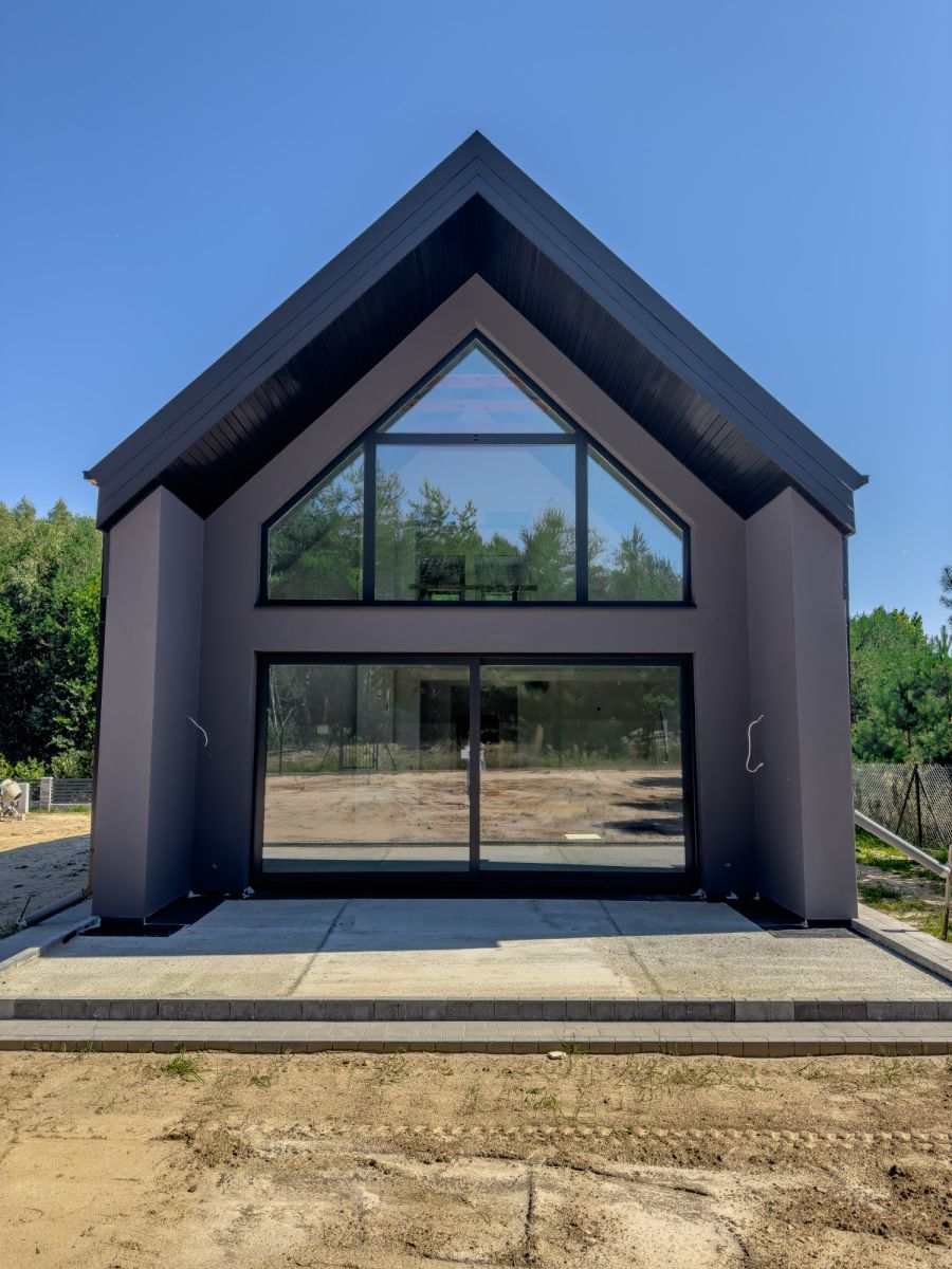 Prezentowany dom to nowoczesna konstrukcja typu stodoła, idealnie wpisana w naturalny krajobraz.