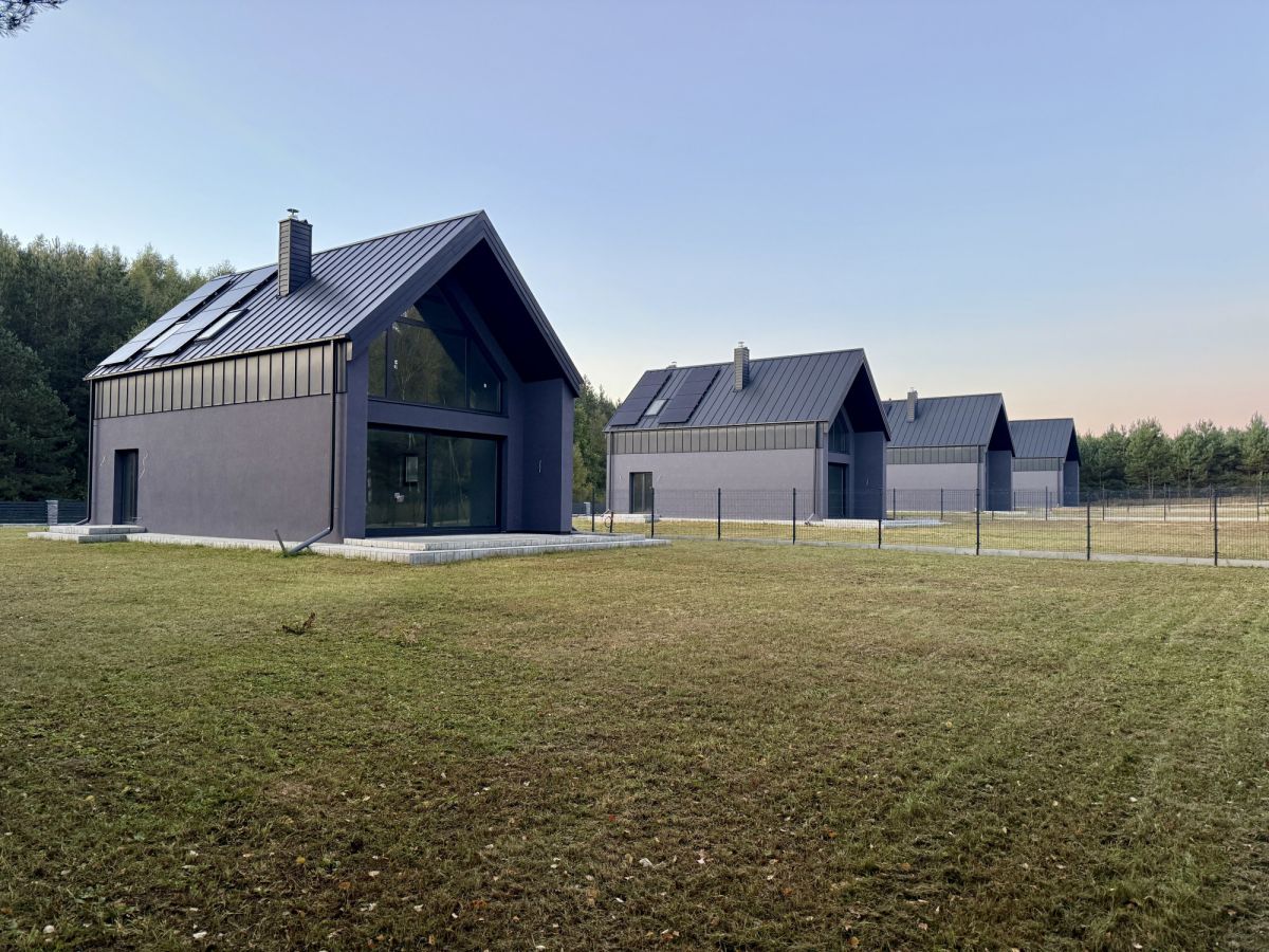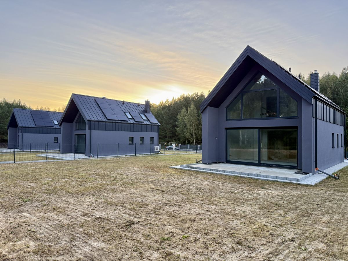 Na sprzedaż nowoczesny dom typu stodoła położony w prestiżowej inwestycji Szwajcaria Dylewska. Kameralny projekt obejmuje cztery domy wolnostojące wyposażone w pompy ciepa i fotowoltaikę, które harmonijnie łączą nowoczesną architekturę z pięknem natury.