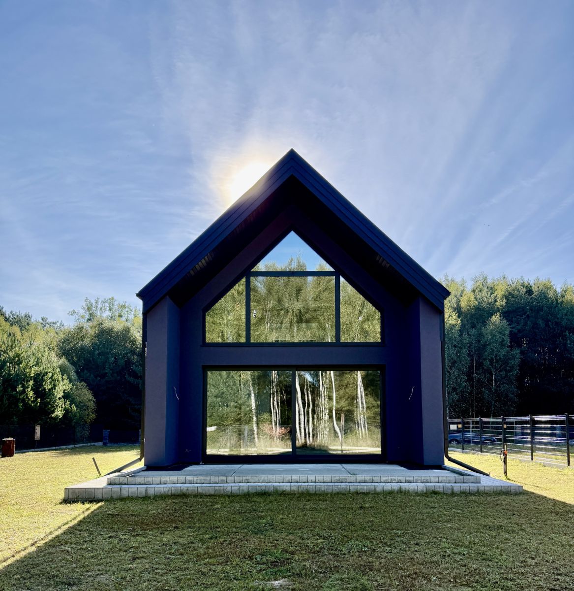 Prezentowany dom to nowoczesna konstrukcja typu stodoła, idealnie wpisana w naturalny krajobraz.