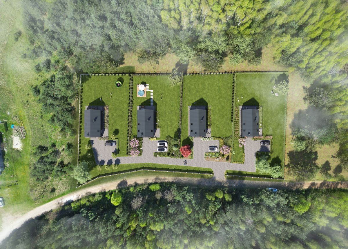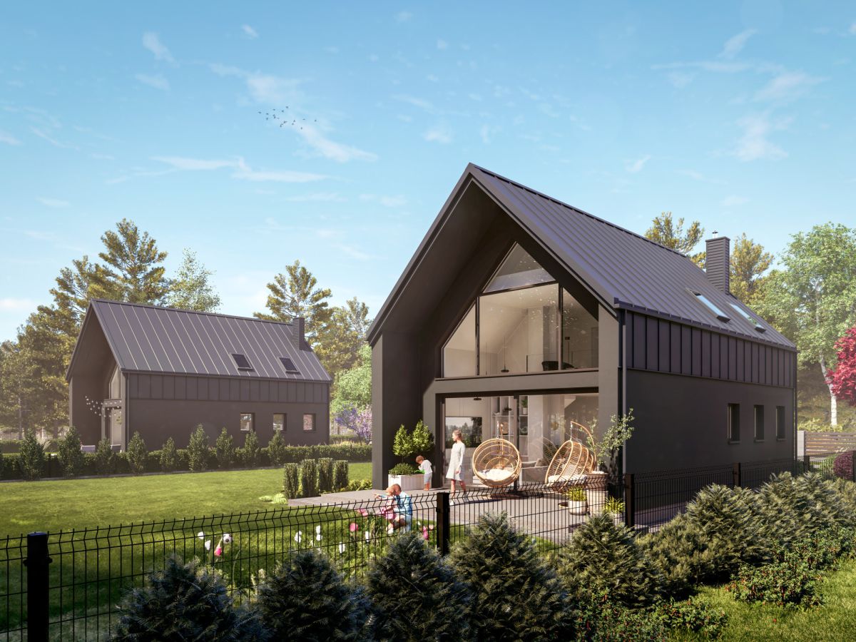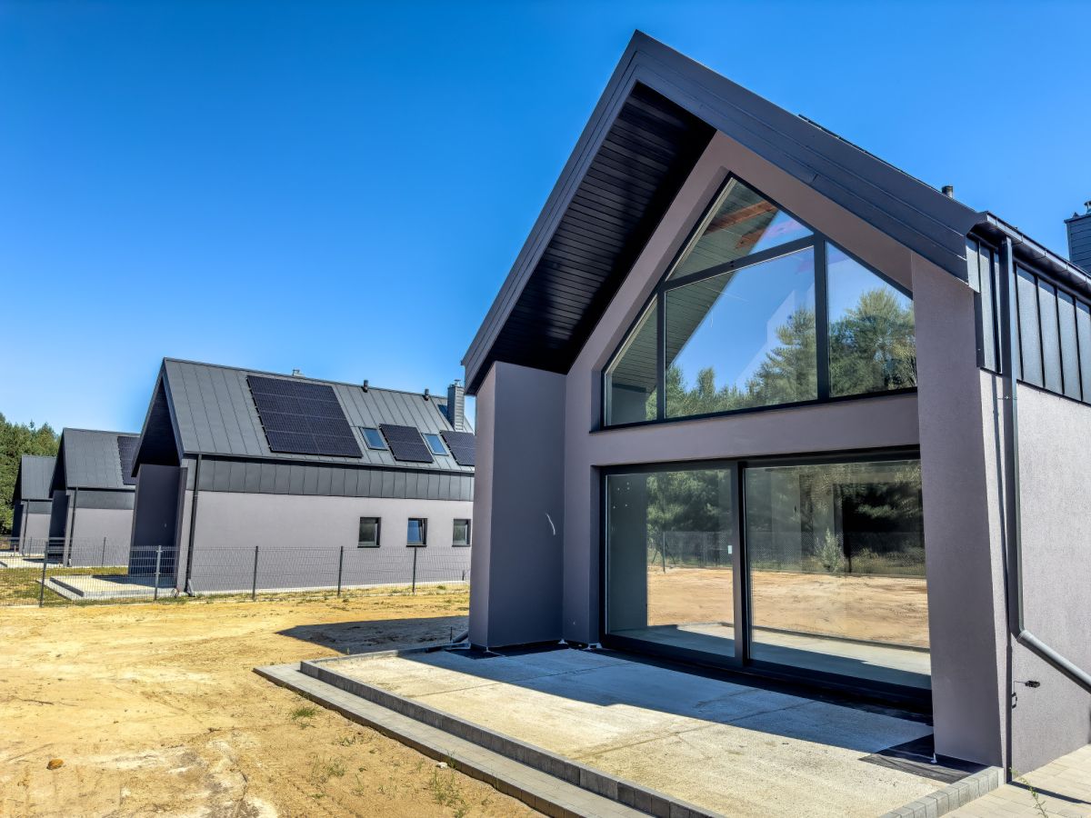 Na sprzedaż nowoczesny dom typu stodoła położony w prestiżowej inwestycji Szwajcaria Dylewska. Kameralny projekt obejmuje cztery domy wolnostojące wyposażone w pompy ciepa i fotowoltaikę, które harmonijnie łączą nowoczesną architekturę z pięknem natury.