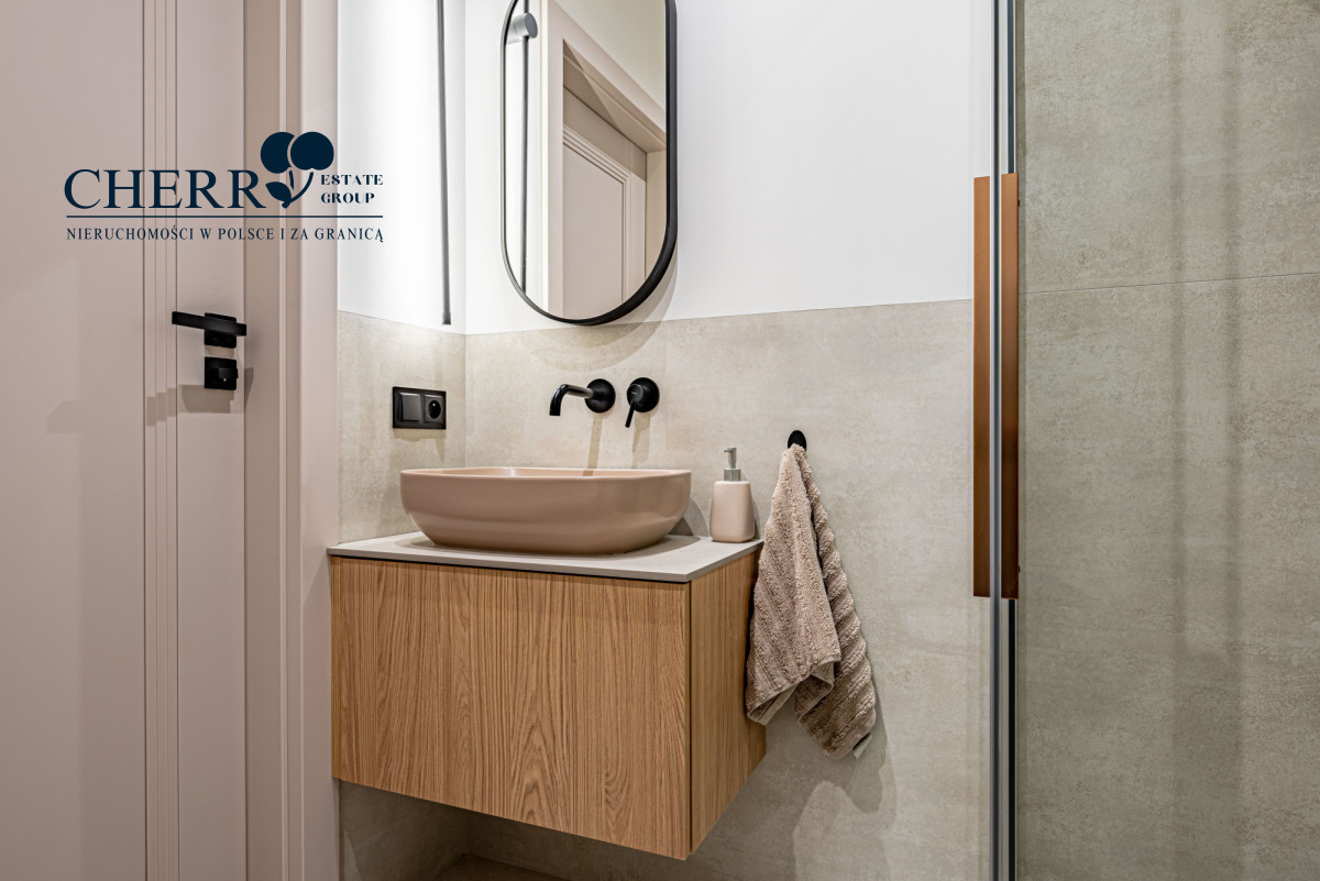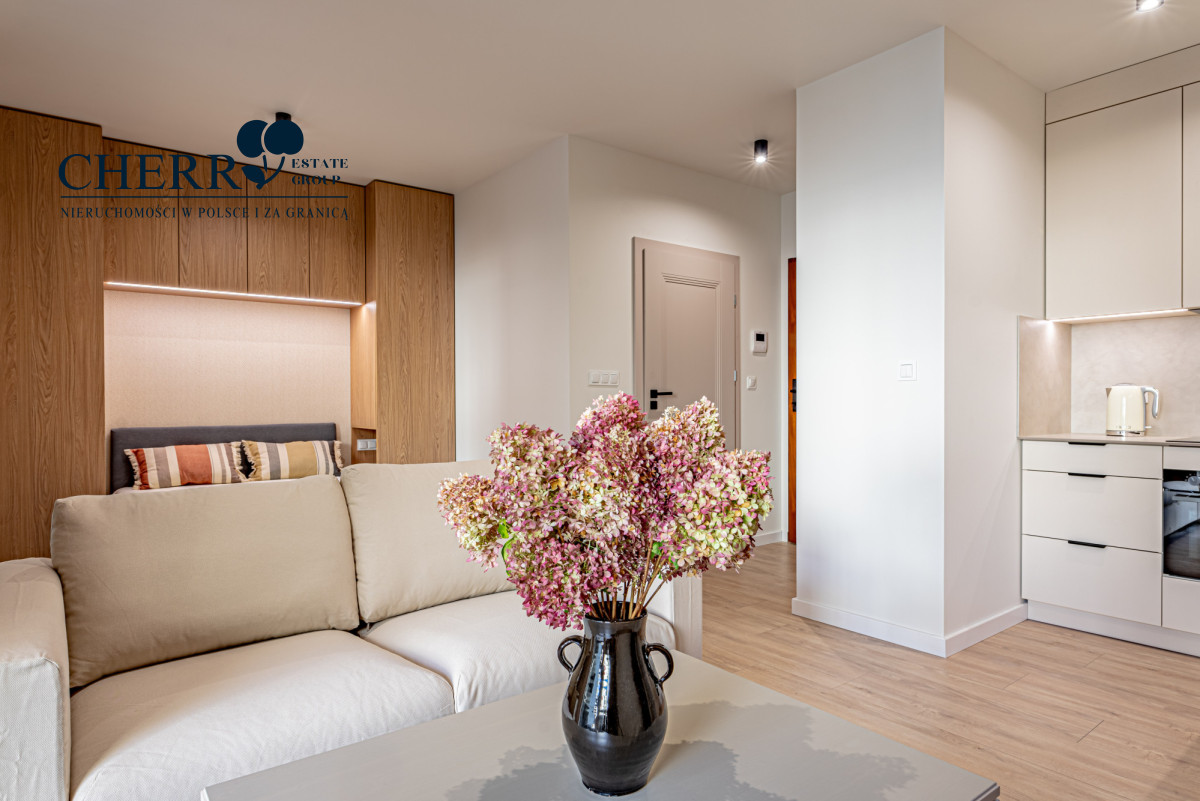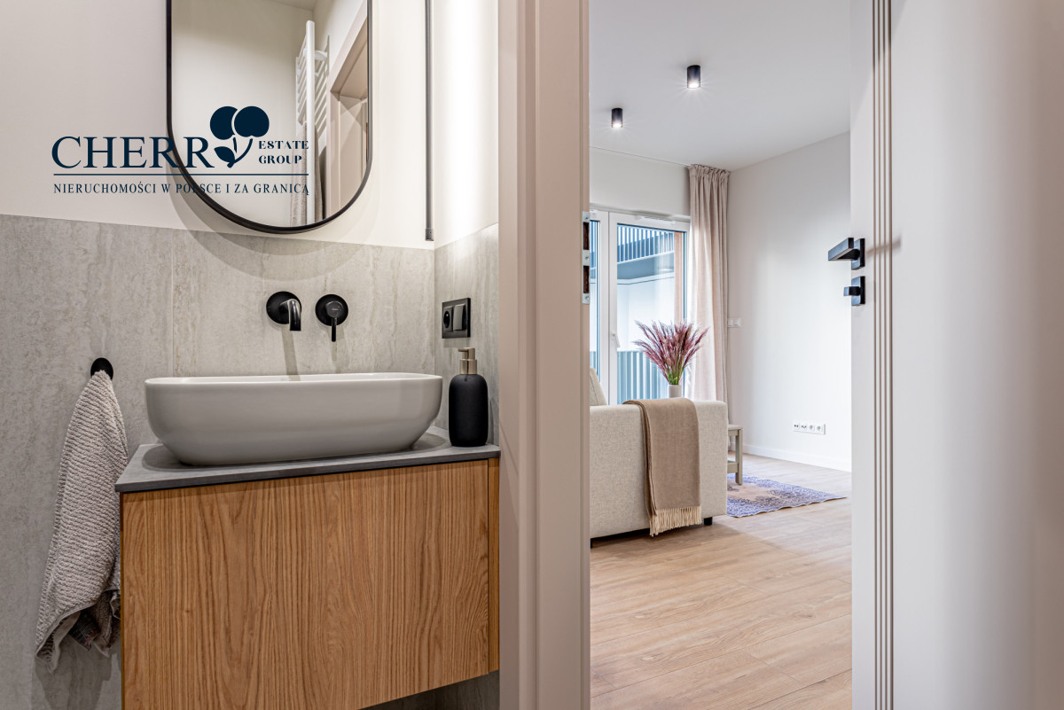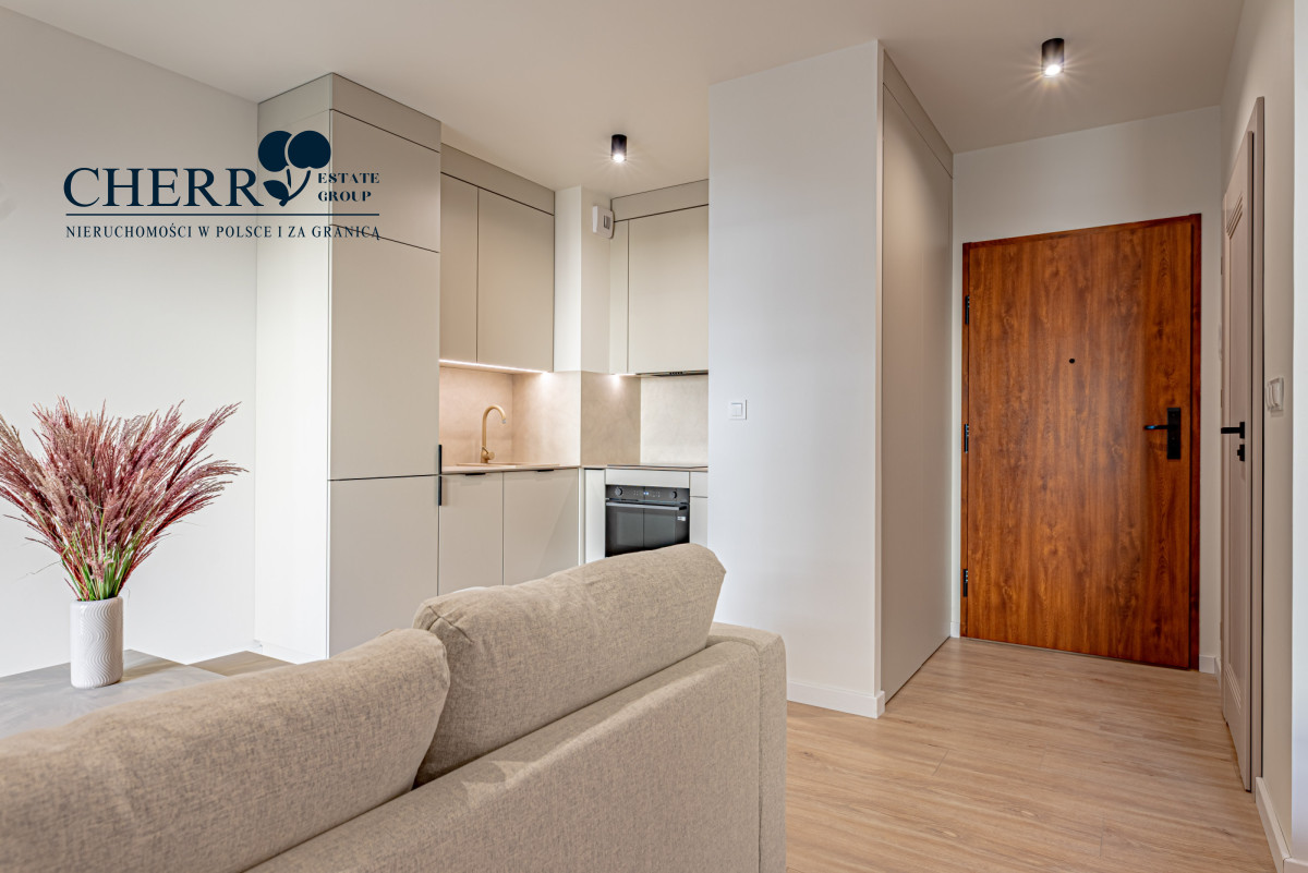 • Wyposażenie: pełne AGD (lodówka, piekarnik, płyta indukcyjna, zmywarka, pralka) oraz meble w zabudowie na wymiar